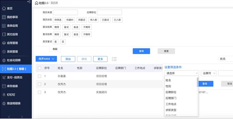 支持簡歷篩選,以及面試簽到、面試評估、面試通知和面試反饋的面試全過程管理。