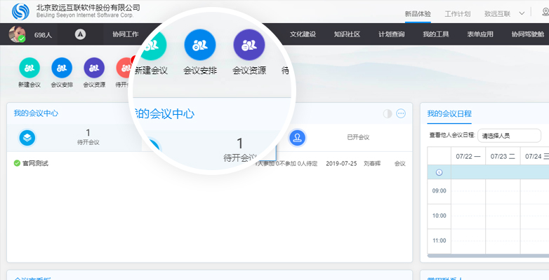 支持PC端、移動端新建普通會議、視頻會議,并支持在線預(yù)約會議室。