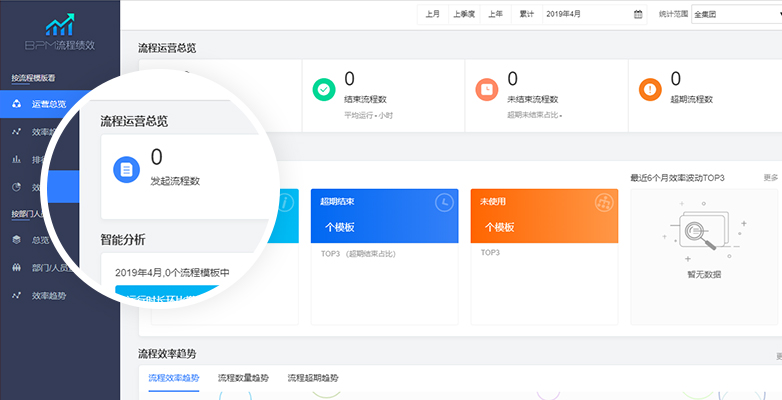 集團化強管控模式支持:流程績效支持查看流程在全集團的運行效率。