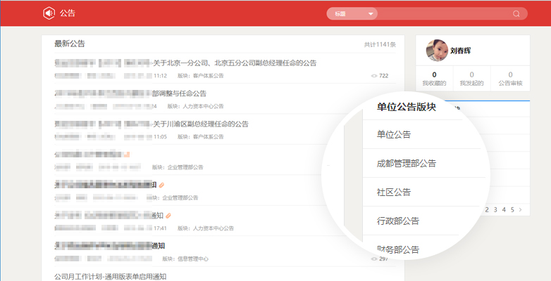 用于新聞的發(fā)布、查看、互動以及按條件查找,是組織內(nèi)部傳遞文化、價值觀與大事件的重要方式。
