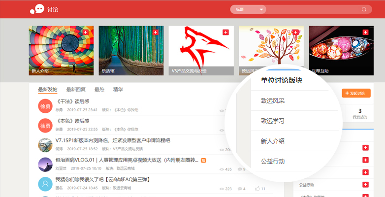 用于發(fā)布討論貼、查看討論貼、回復(fù)討論貼,以及按條件查找已發(fā)的討論貼,營造一個相互幫助、相互激勵、互相交流的工作氛圍。