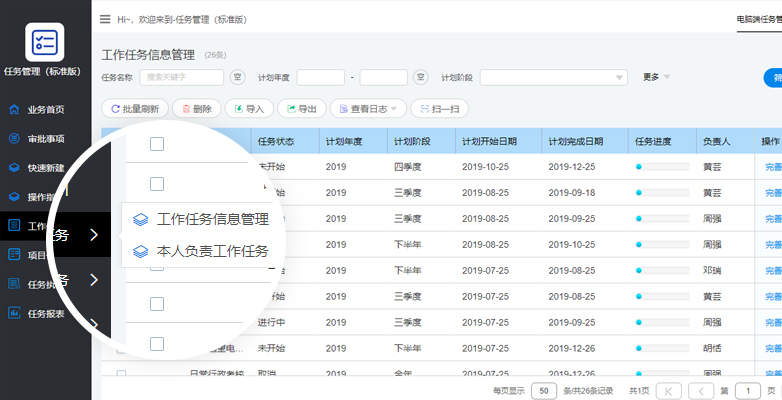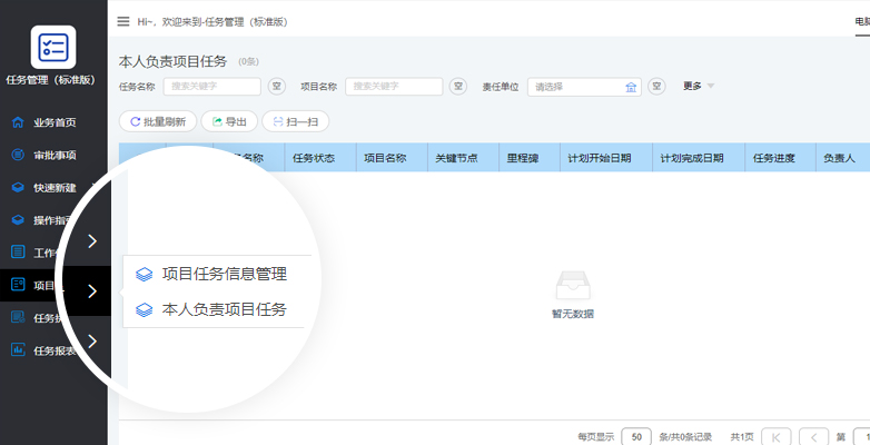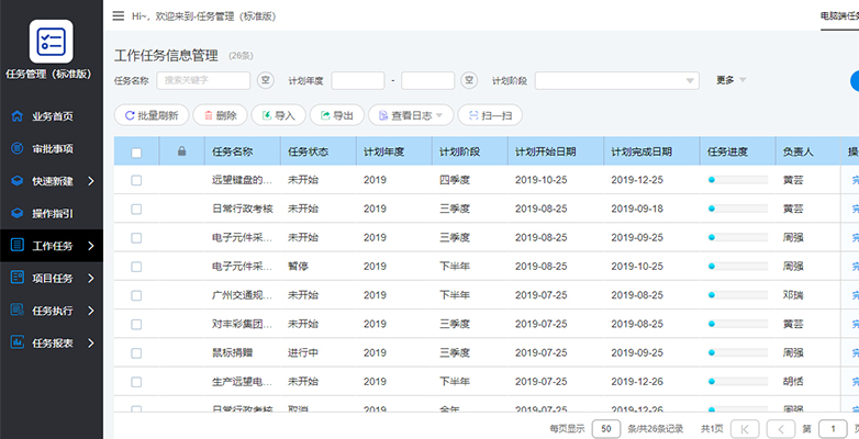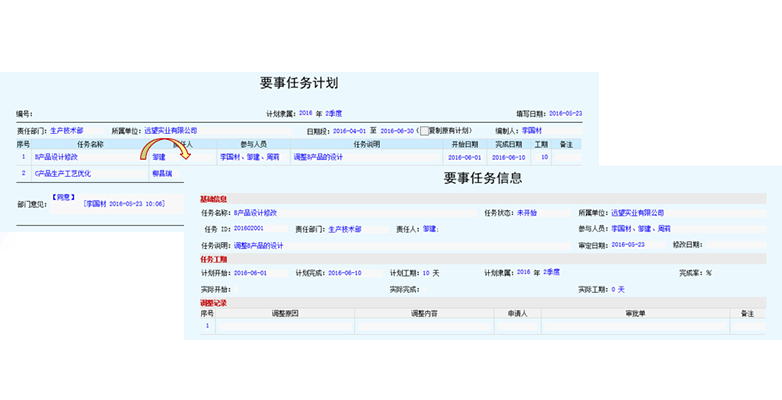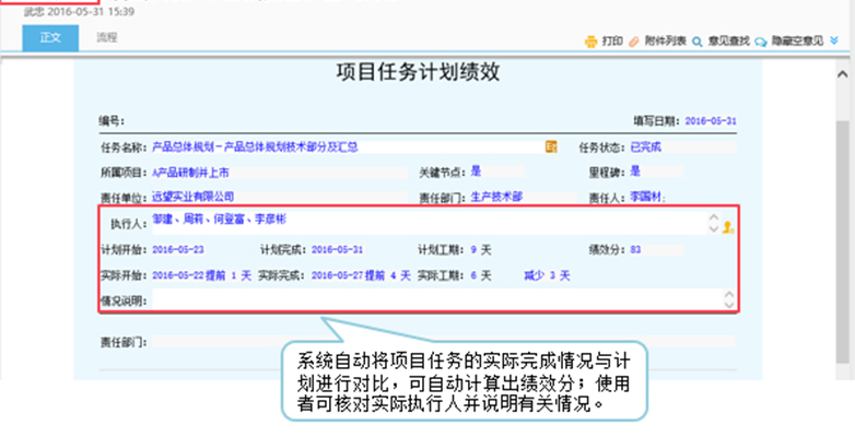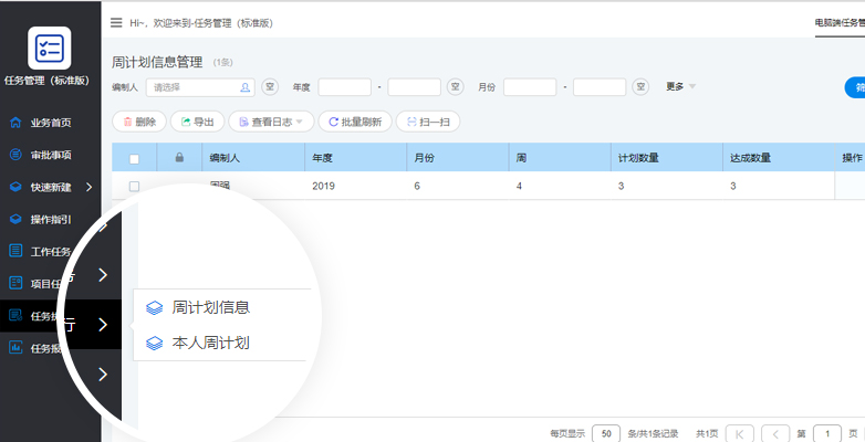 通常任務(wù)計劃執(zhí)行可按月、按周進行,執(zhí)行時可直接讀取已經(jīng)過審批的項目任務(wù)計劃和要事任務(wù)計劃。
