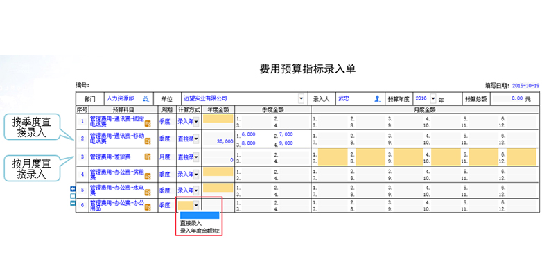 費用指標(biāo)的金額可批量一次或多次錄入。