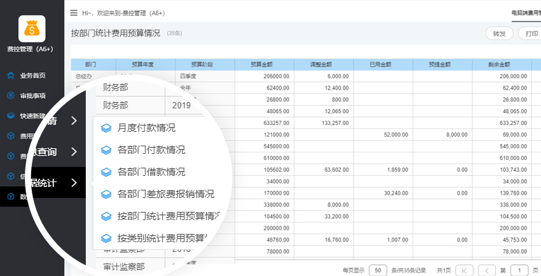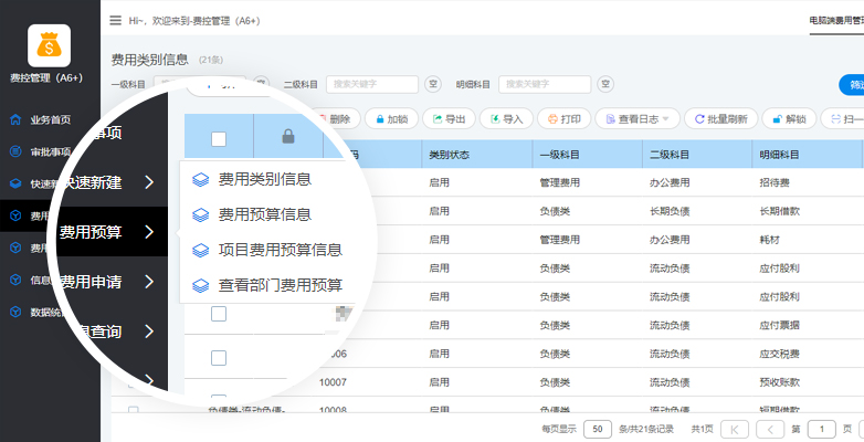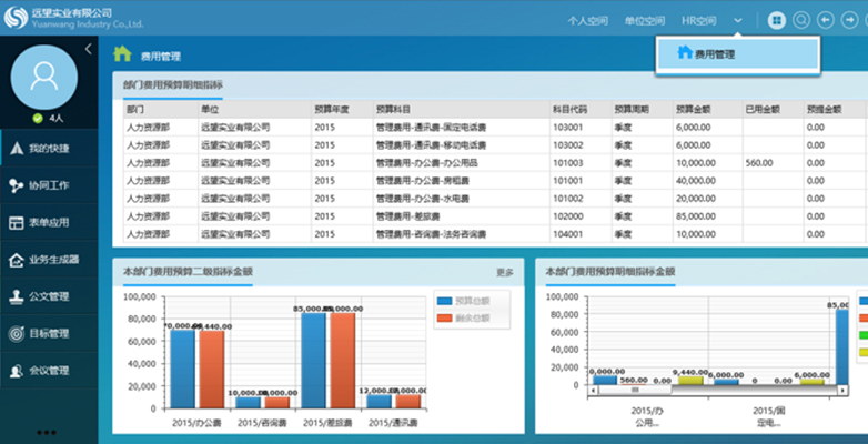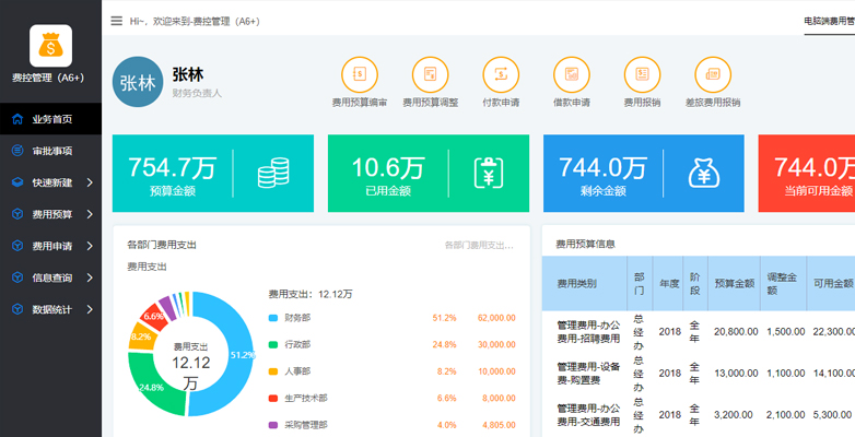 費用管理的空間針對不同的人員分別設(shè)置,在一個頁面上輸出并呈現(xiàn)管理者所需的數(shù)據(jù)。