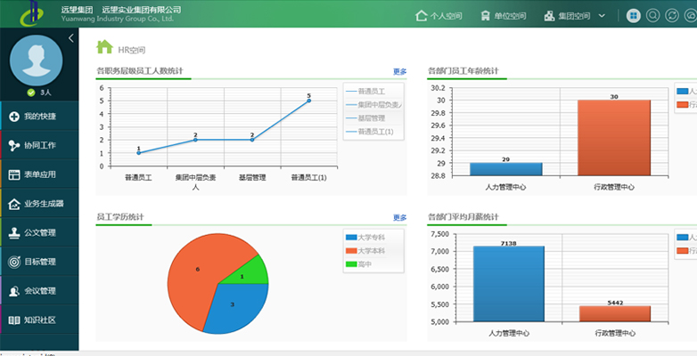 人力資源數(shù)據(jù)在空間頁面中直觀呈現(xiàn),隨時可掌握子公司人力資源狀況。