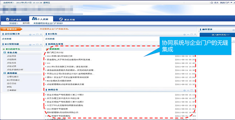可實現(xiàn)明源、竟優(yōu)、銀禾、NC、郵箱等集成,搭建企業(yè)信息化的統(tǒng)一入口。