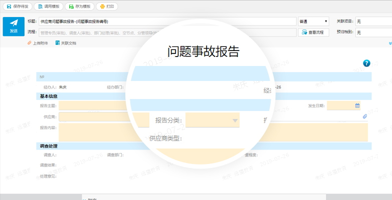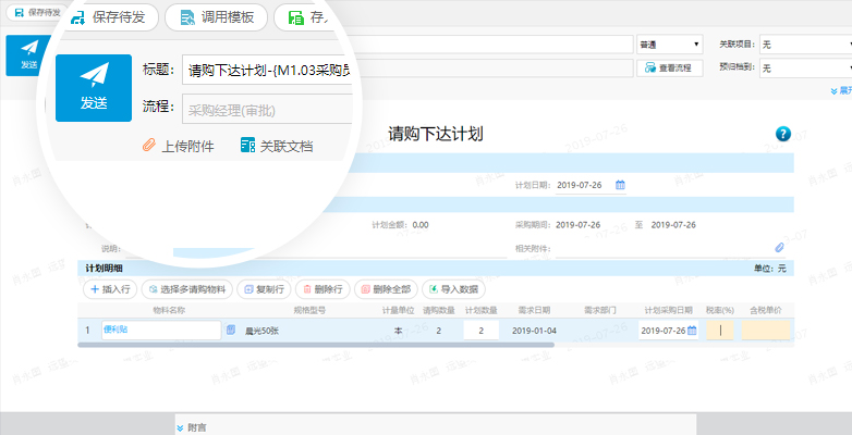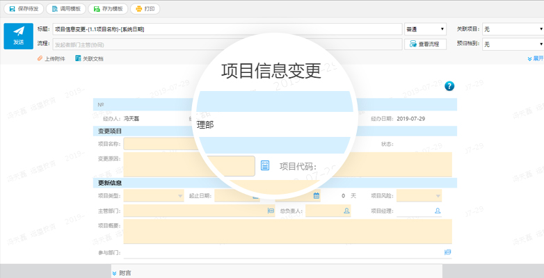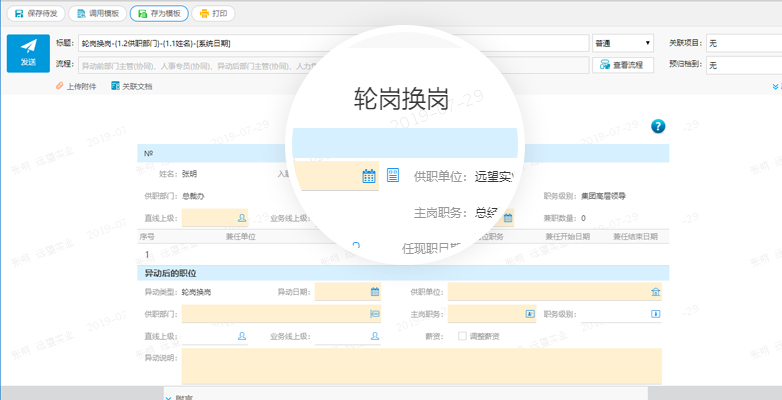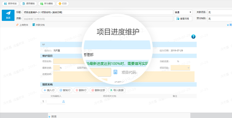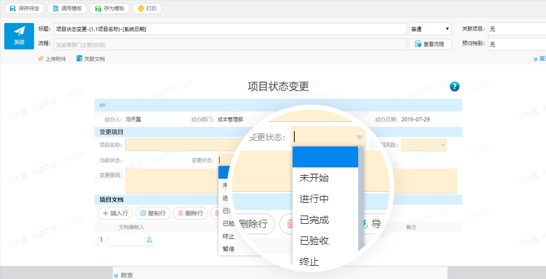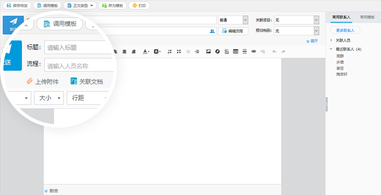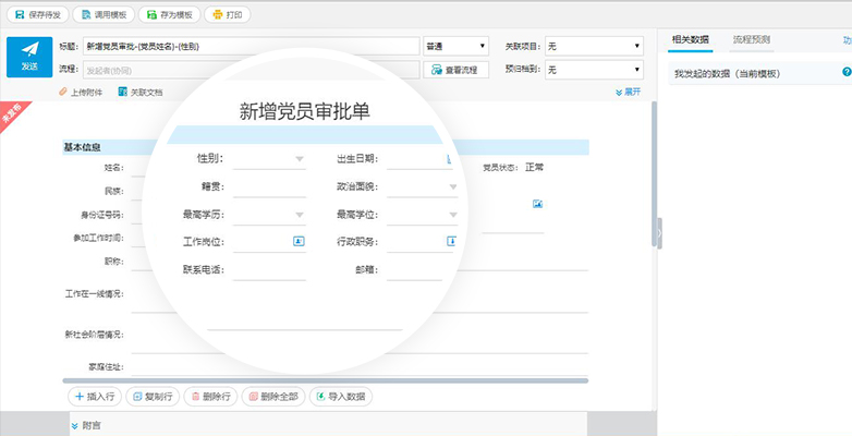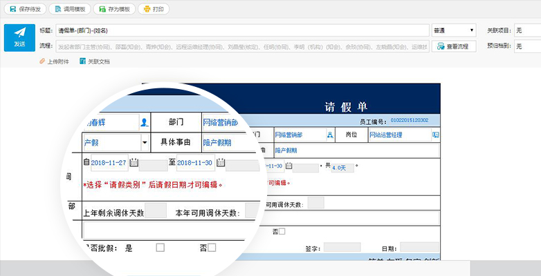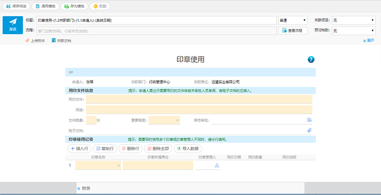 支持快速發(fā)起協(xié)同工作流程,可自定義流程,也可調(diào)用模版流程。