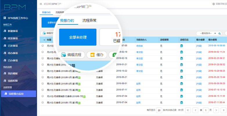 01BPM門戶 02新建事項 03待發(fā)事項 04已發(fā)事項 05待辦事項 06已辦事項 07督辦事項