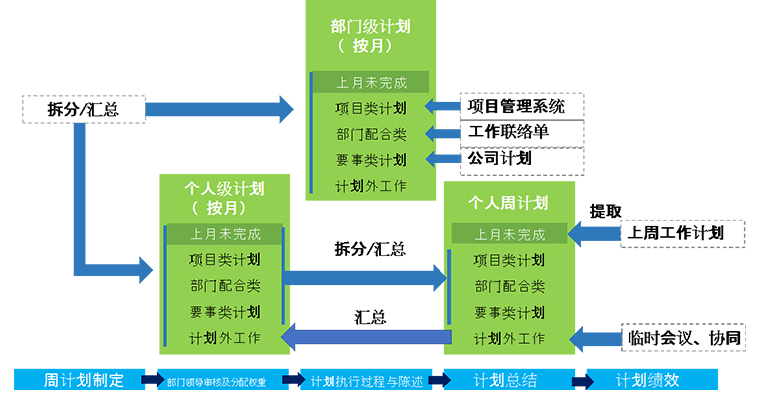 月工作計劃已同績效進行了結(jié)合,若只使用周工作計劃,則可以每月根據(jù)周工作計劃的執(zhí)行情況進行績效的評核。