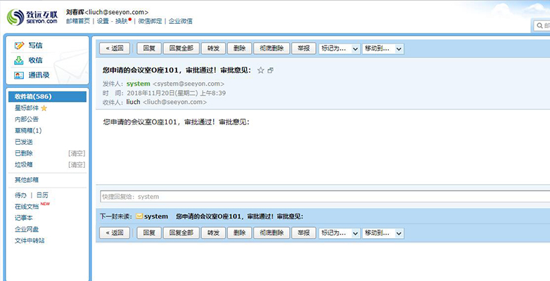 提供圖形化的會議室申請界面,直觀展示會議室占用狀態(tài)。