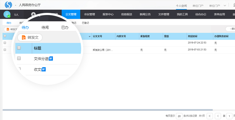支持對待發(fā)公文的管理和發(fā)布。支持對待辦、已辦、在辦、已辦結(jié)、待發(fā)、已發(fā)公文的批量處理。