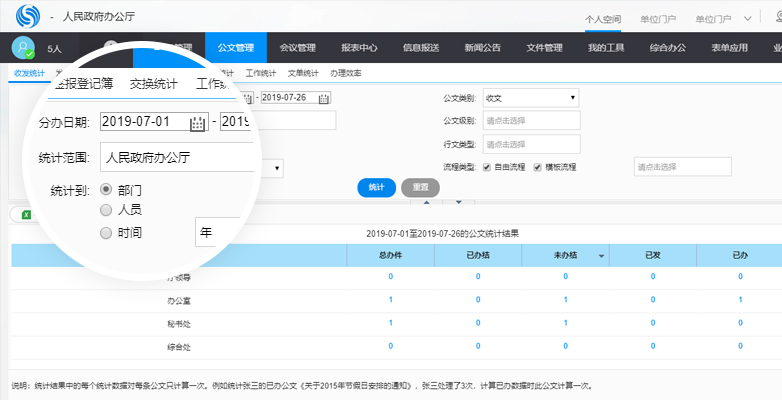 支持多維度查詢處理過的公文,并支持excel導(dǎo)出。支持收發(fā)查詢和收發(fā)統(tǒng)計,便于對過程和結(jié)果進行分析。