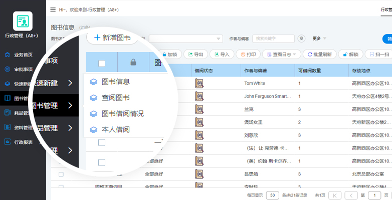 支持管控流程、管理表單、數(shù)據(jù)報表、報告文件、會議管理等。