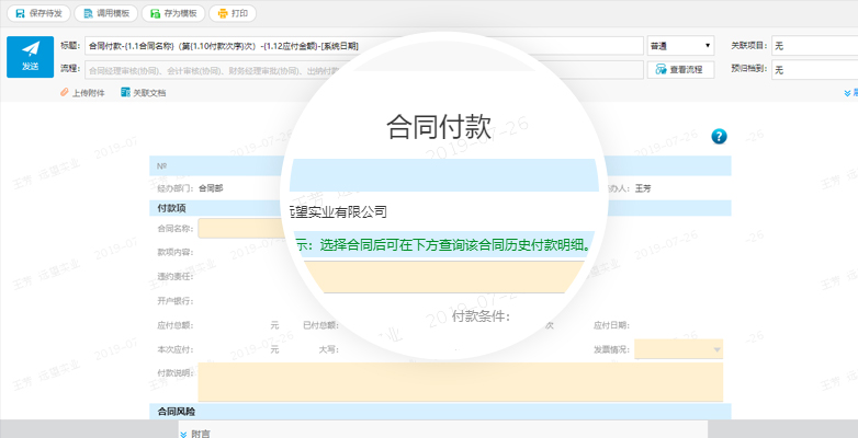 支持發(fā)起報銷和付款流程,并與預(yù)算、合同等相關(guān)聯(lián)。