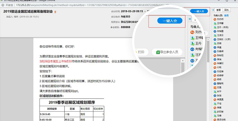 會議資源可視化,實時動態(tài)掌握會議室情況,及參會人員會議日程,保障工作時間的合理規(guī)劃。
